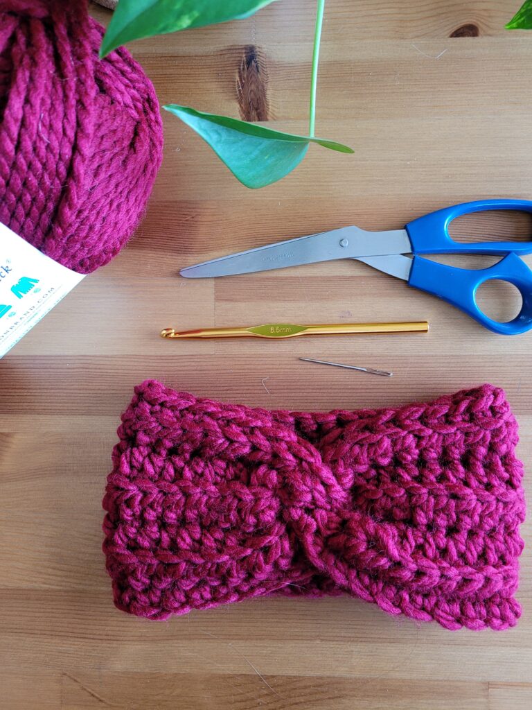 Using chunky or super chunky yarn for this project will ensure that you are making a nice and warm earwarmer, and will work up super fast!